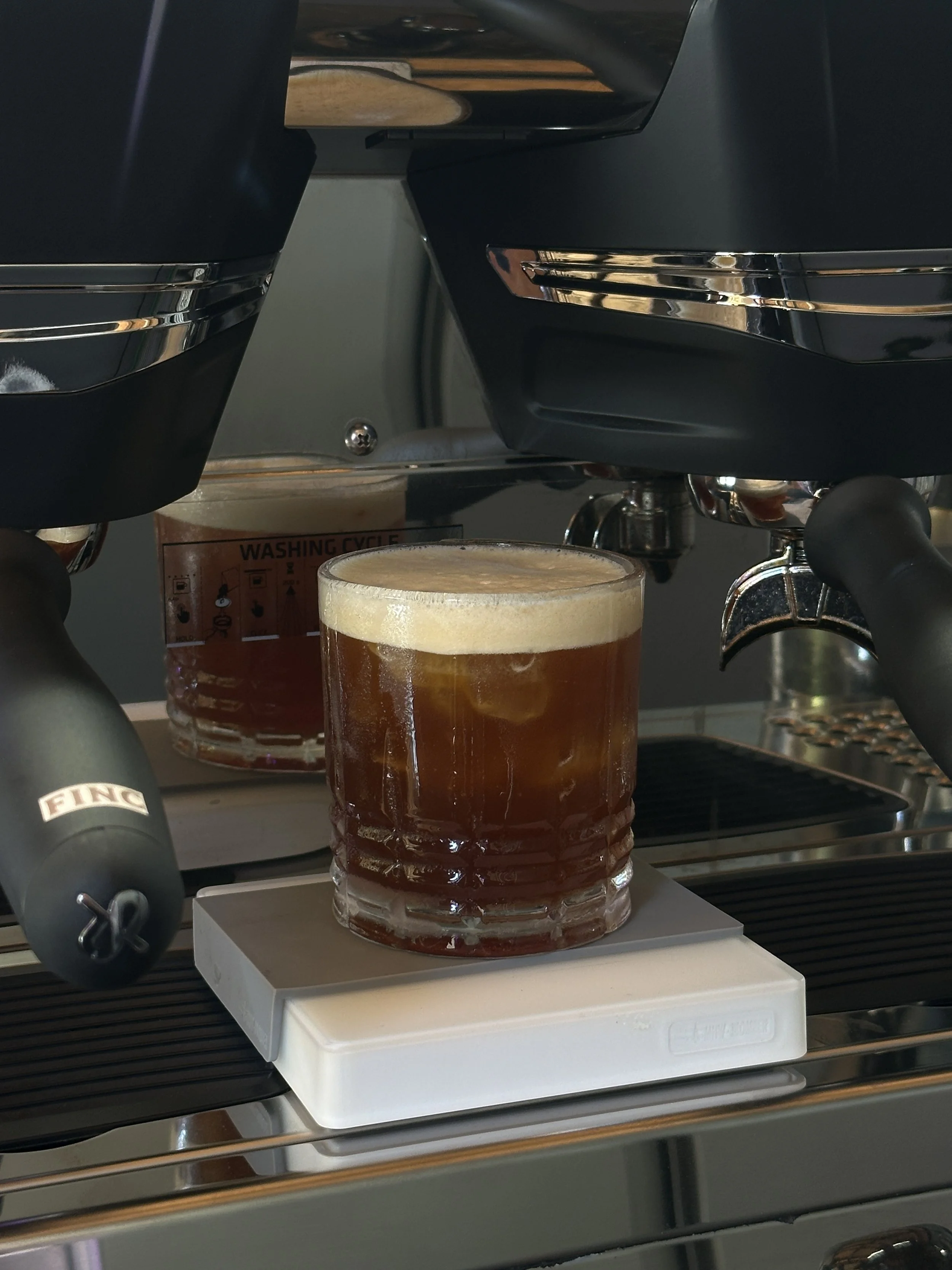 Double espresso over filtered water: a lighter profile without losing clarity or complexity.
